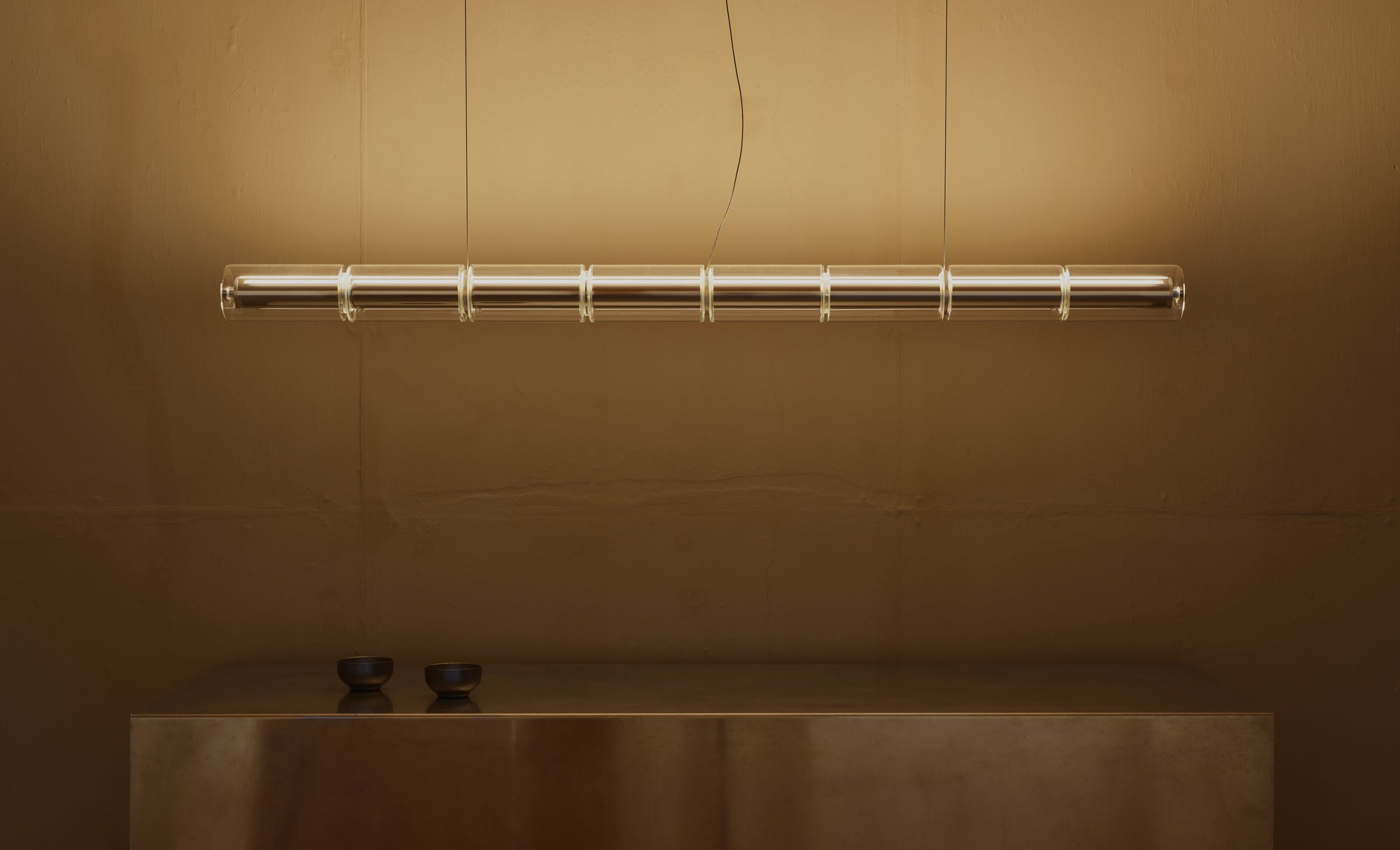 檢視完整細節Luce Orizzontale 吊燈是 Bouroullec 設計師兄弟檔的作品,Luce 在義大利文指的是光,這款簡約的線性長型吊燈,有著紋路的管狀玻璃燈罩,為工匠手工製作,如竹節般連接為長型的線性吊燈,LED光源包嵌在內,每一只都有獨一無二的紋飾,具有玻璃材質特有的透明晶感,與光互映相當...