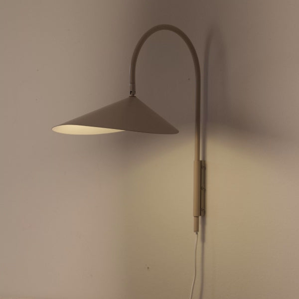 北歐進口燈飾 Arum 壁燈有著如海芋花瓣樣式的燈罩,纖細彎曲的燈桿像是植物枝桿的姿態,自然有機的形狀賦予清新的意象,白色的內燈罩能夠映出柔和的光源,創造出溫馨的氛圍,壁燈的燈臂能夠旋轉,燈罩也能隨著使用者自由調整照明角度,並搭配同色紡織電線,創造和諧的視覺美感。
