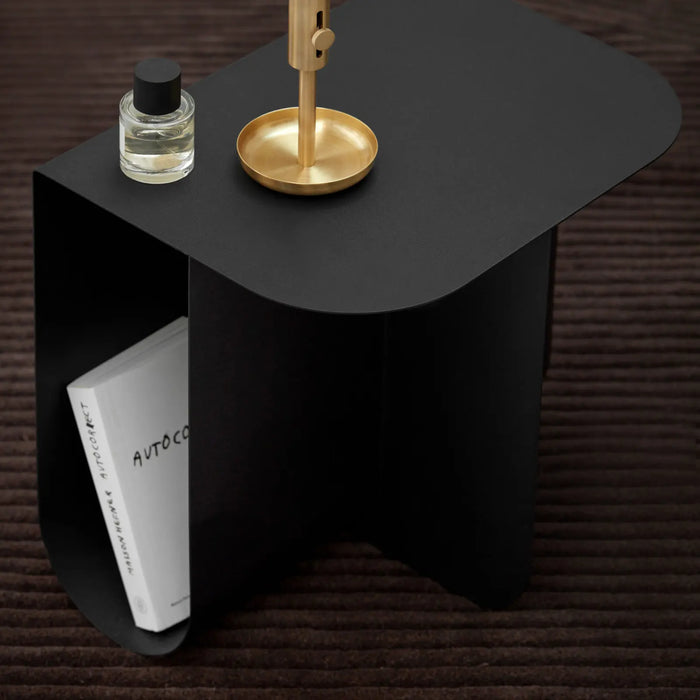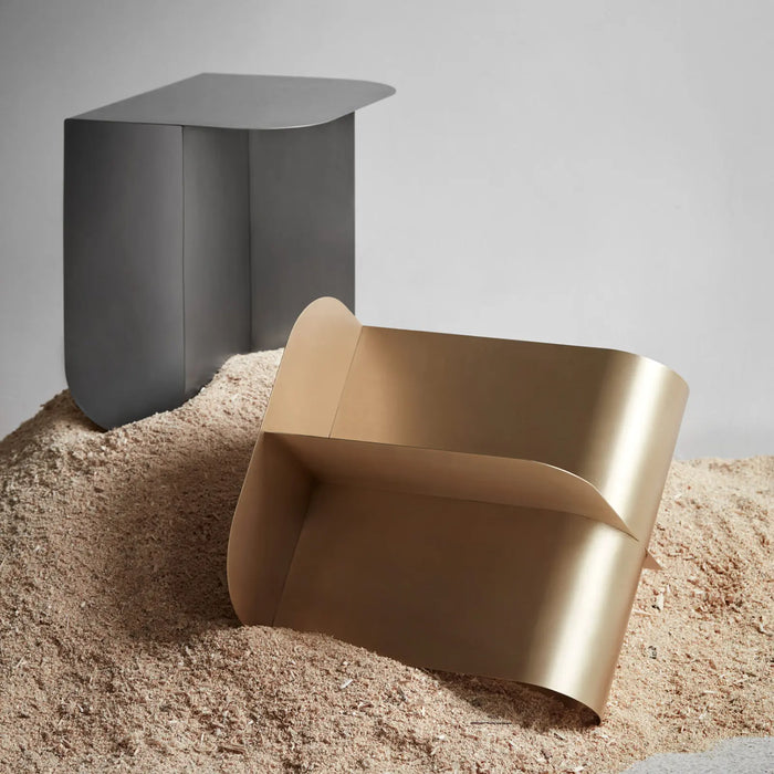 Mass 北歐邊桌使用精湛的工藝技術,將金屬材質細膩彎折成幾何面向,開放式收納空間,也能同時展示收藏的書本雜誌,俐落帶著開透感的結構,當光線灑落,也能創造細緻的光影效果 。