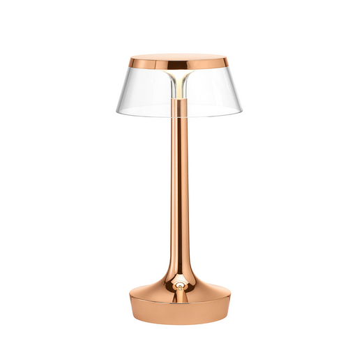 燈罩採用獨特三層玻璃吹製技術,將白色玻璃夾於兩層透明玻璃之間,層次分明且厚度各異,保持光源與燈罩的理想距離,呈現均勻柔和的光影。此設計提供三種顏色選擇:鋁銀色、棕色與白色,並以可回收材質製成,體現 Flos 對環境永續的承諾。讓這盞桌燈不僅成為生活的一部分,更是一種風格與態度的延伸。