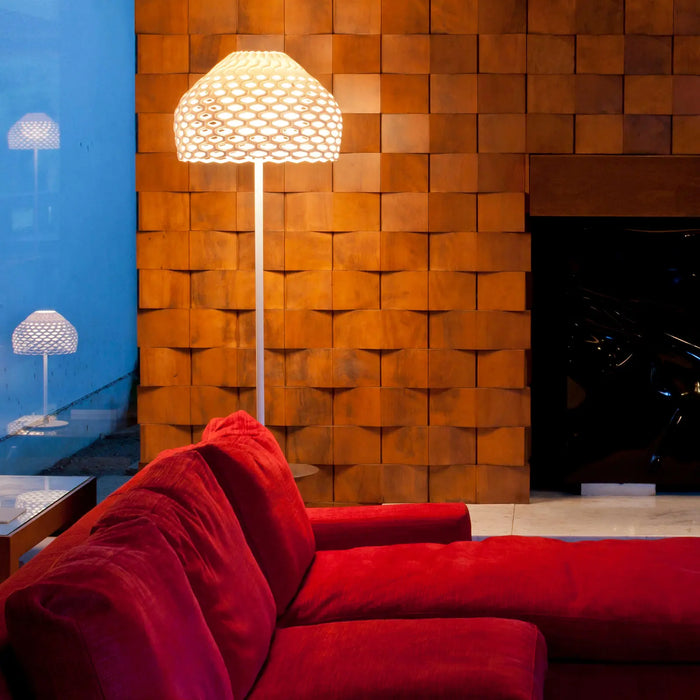 Tatou 系列以獨特的網格飾紋,傳遞出現代古典的靜謐與美麗,平衡而柔美地,藉由內側的內燈罩,將光源溫和地透射,帶來讓人放鬆與親切的燈光風格。全燈身以合成塑料聚碳酸酯打造,輕盈無負擔的重量設計,兩種尺寸款式,兩種亮面光澤色彩風格,帶給您新穎而出色的空間燈飾選擇。