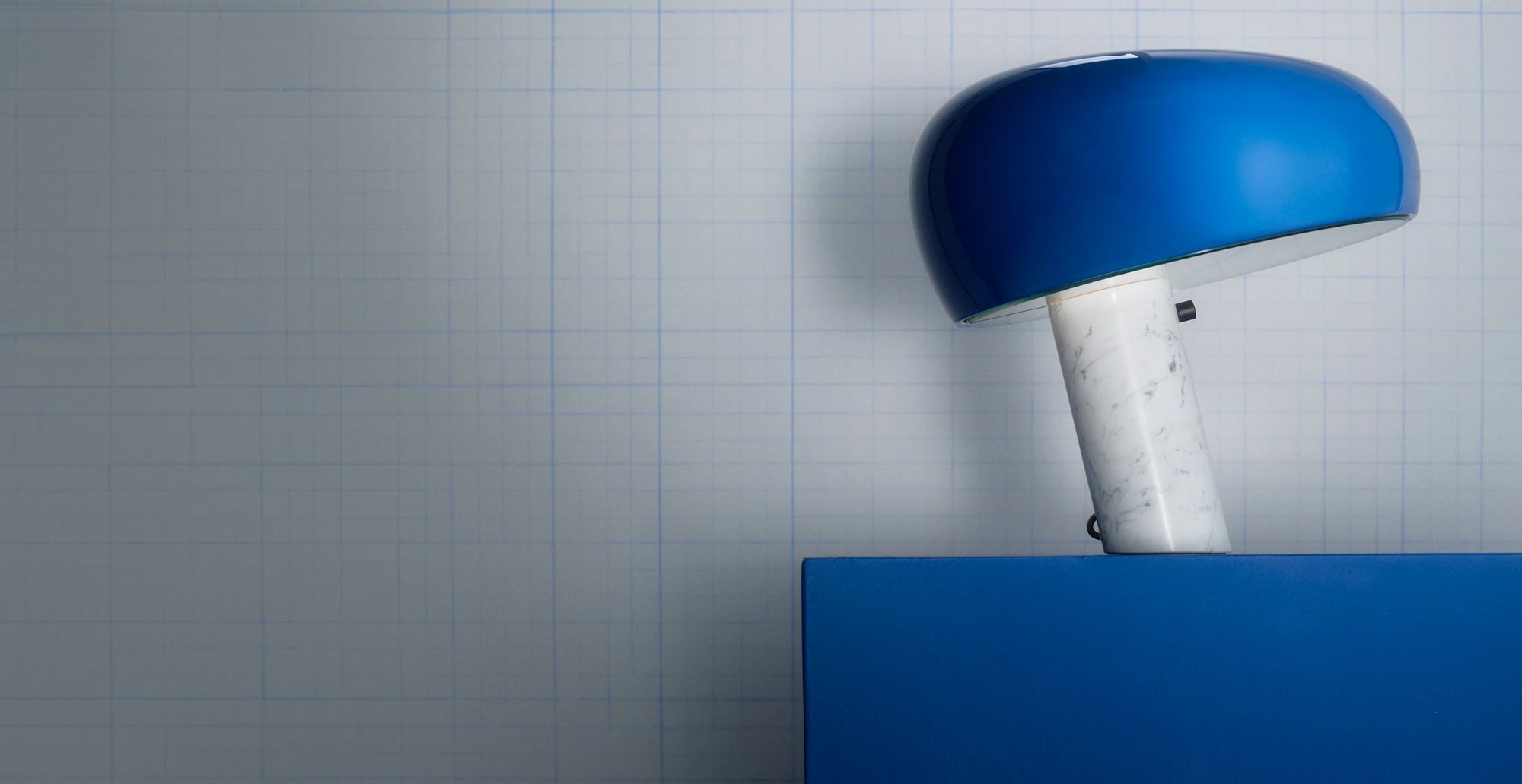最初推出的 Snoopy 桌燈,以黑色燈罩為經典,隨著時間推移這款設計逐漸發展出更多變化,包括綠色與橙色的款式。最新推出的海軍藍燈罩,靈感源自 Achille 與 Pier Giacomo 於 1966 年為 Flos 設計的 Sciuko 燈中所採用的色調,再次為這經典系列注入一抹時尚新意。