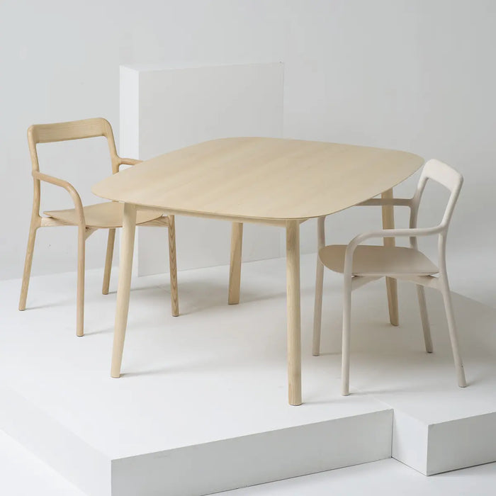 餐桌作品,原木色桌面為梣木,白色桌面為 MDF 材質,兩種桌面尺寸: