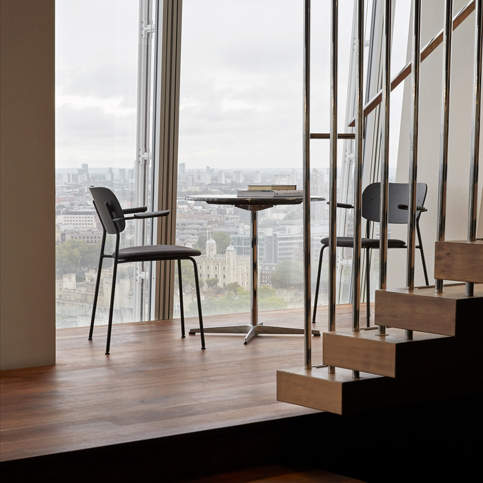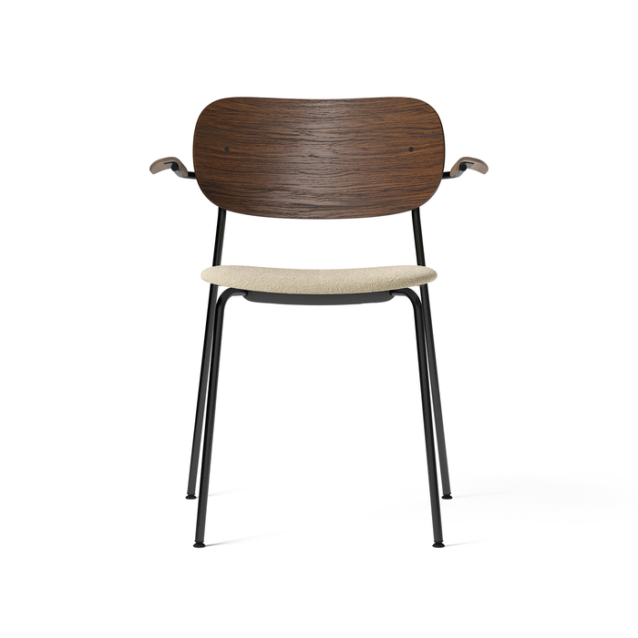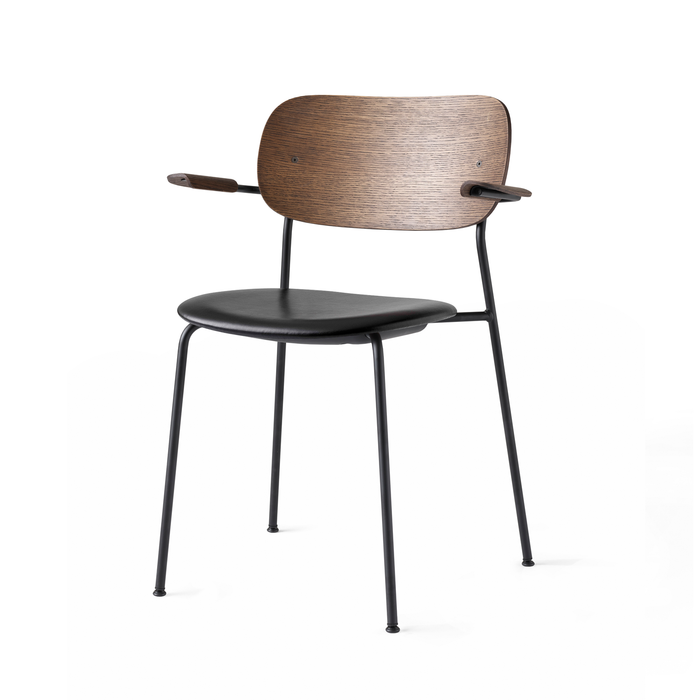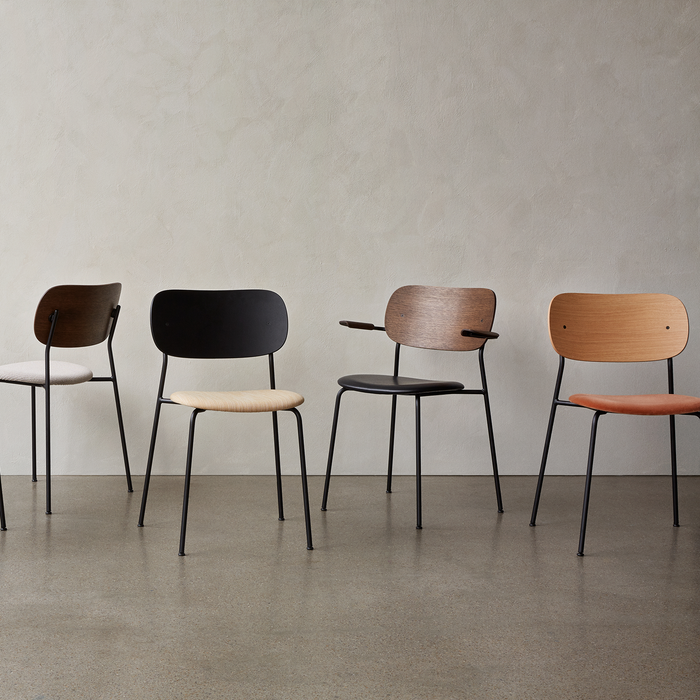 Audo Co 餐椅系列以輕盈流暢的外型展現簡約設計精神。細緻金屬椅腳搭配微彎椅背,結合木質與金屬材質的扶手,讓手臂自然放鬆、後背舒展。坐感舒適,呈現自然質感與優雅品味,適用於居家與各式公共空間。