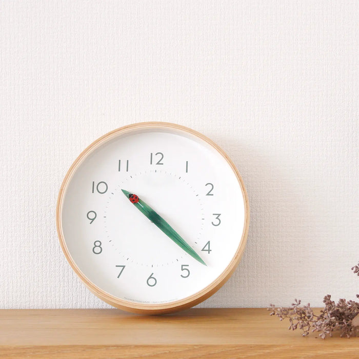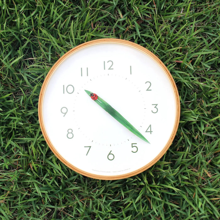 這款壁鐘的靈感從自然之美發想,讓時計指針化為綠葉與昆蟲,每過一小時,時針與分針交疊時刻,瓢蟲就會恰好停留在葉上休憩,當人們不經意的抬頭望向時鐘,也許就會巧合地捕捉到這一刻,感覺生活發生細微美好的小事物。 精密的靜音指針讓時間無聲流過,讓生活更加安適自在,不受打擾。