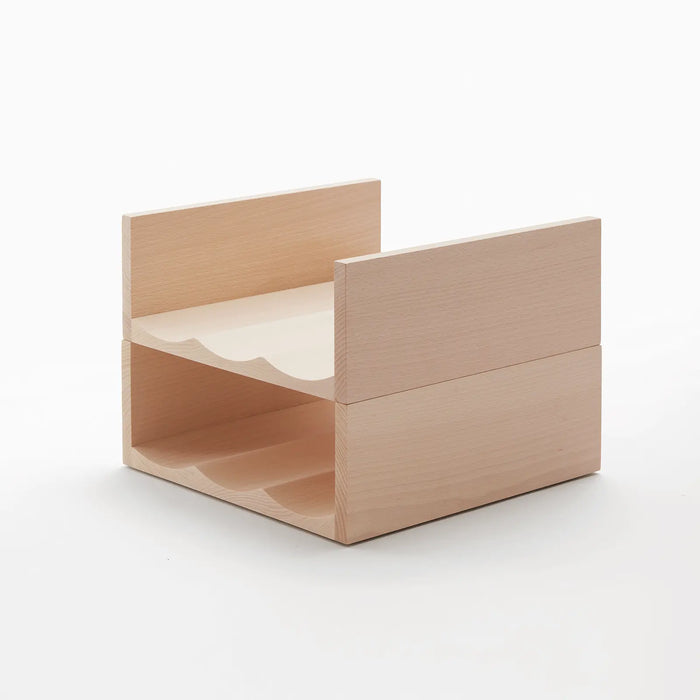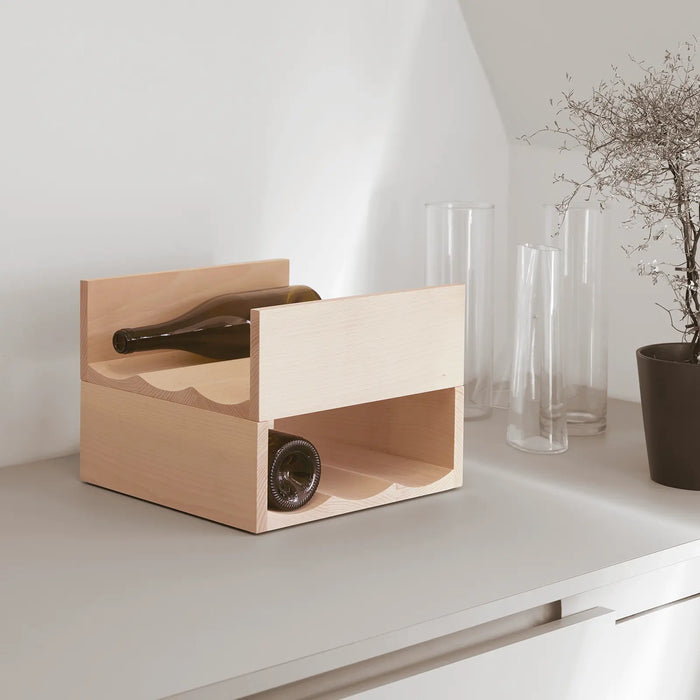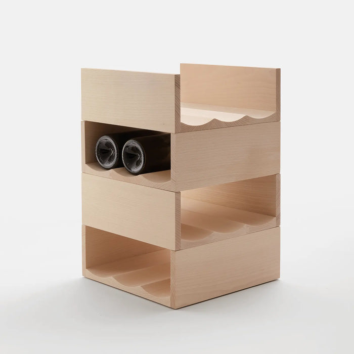 Bibita 波浪造型酒架,由倫敦設計師 Max Frommeld 為 Mattiazzi 設計的簡約酒瓶架。使用天然未經處理山毛櫸木製作,每片木頭都是獨一無二、擁有不同的天然紋路特徵差異,山毛櫸木顏色偏白, 木材質感圓潤,利用傳統的凹槽卡榫工法達到木材浪費的最小化,帶有義大利木匠工藝手工完成的 Bibita 酒架,擁有自然有機的線條、和天然山毛櫸木的細膩柔和。