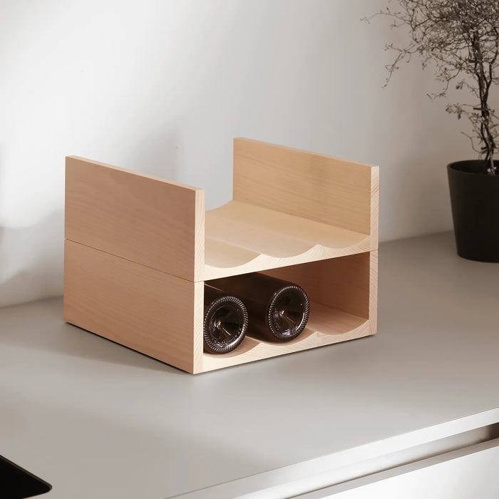 Bibita 酒瓶架可容納三瓶酒瓶,可依空間所需相互堆疊的設計提供,為家中酒瓶收納需找到美麗的棲身之所。