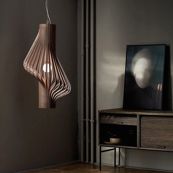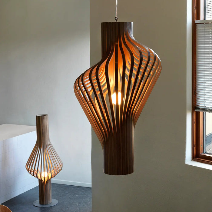Diva 極富視覺張力的造型燈飾,木條加彎與線條環狀勾勒的具體美感。讓燈飾宛如藝術裝置,也是 Diva 與眾不同之處。